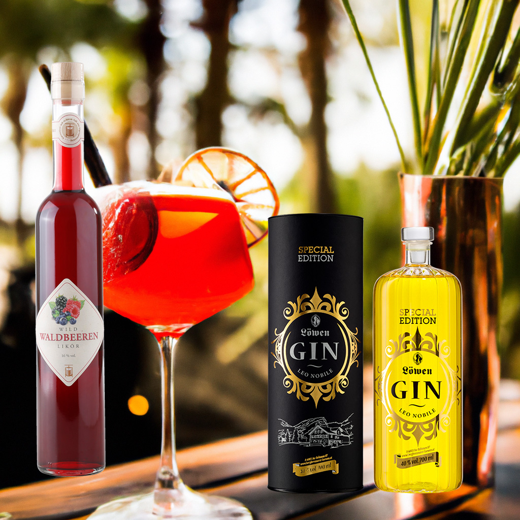 Gib den Gin, den Waldbeeren Likör, den Zitronensaft, den einfachen Sirup und das Eiweiß in einen Shaker und schüttle alles kräftig durch. Gib Eis in ein hohes Glas und gieße den Drink darüber. Fülle das Glas mit Sprudelwasser auf und garniere den Drink mit Beeren.