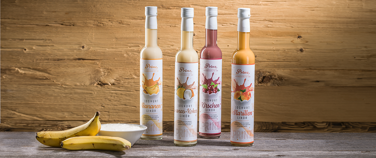 Im Glas treffen sich saftige, süße Früchte und cremiger Joghurt - das ist der Sommer! Die Prinz Joghurt Liköre verführen mit ihrem herrlichen, fruchtigen Geschmack und ihrer außergewöhnlichen Leichtigkeit. Die hohen Qualitätsansprüche der Feinbrennerei Prinz werden nur durch sonnengereifte Früchte und frischen Joghurt von Bauern aus der Region Bodensee erfüllt. Mit einem fruchtigen Alkoholgehalt von 15 % vol und einer Vielzahl exotischer und heimischer Frucht-Essenzen ist sicher für jeden Geschmack etwas dabei. Die zarten Prinz Joghurt Liköre verbreiten ein reines Sommergefühl und sind ein erfrischender Genuss mit einem Hauch Urlaubsfreude. Joghurt Bananen Likör 15% vol 0,5 Liter Joghurt Ananas-Kokos Likör 15% vol 0,5 Liter Joghurt Kirschen Likör 15% vol 0,5 Liter Joghurt Marillen Likör 15% vol 0,5 Liter