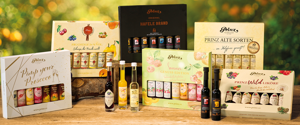Erleben Sie eine Auswahl der fruchtigen Schnäpse mit 34 % Vol. der Feinbrennerei Prinz in einer schöner Geschenkverpackung. Das perfekte Geschenk für alle Freunde/innen von edlen fruchtigen Schnäpsen. 1 x 0,04 l Honig Marillerla 34 % Vol. 1 x 0,04 l Honig Birnerla 34 % Vol. 1 x 0,04 l Himbeerla 34 % Vol. 1 x 0,04 l Hoadla 34 % Vol. 1 x 0,04 l Birnerla 34 % Vol. 1 x 0,04 l Nusserla 34 % Vol. 1 x 0,04 l Hausschnaps 34 % Vol.